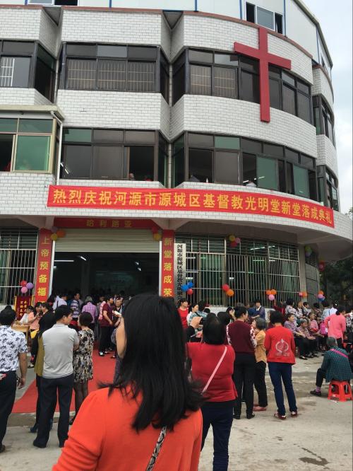 4月23日上午,广东省河源市源城区的光明教会举行了新堂献堂庆典活动。共有河源市教牧同工、各堂点兄弟姐妹约1300人参加了本次活动。广东省基督协会会长樊宏恩牧师、河源市民宗局蓝晓军副局长等牧者分别到场致辞。