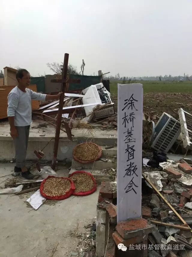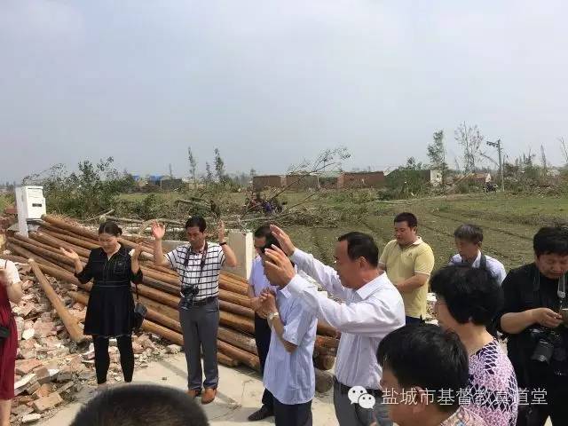 安孝辉牧师为涂桥教会重建祝福(图:盐城市基督教真道堂微信)2016年6月29日,盐城市基督教真道堂的部分堂委暨办公室人员代表本堂全体信徒赴阜宁县灾区慰问,并带领本堂同工到被龙卷风袭击的重灾区涂桥教会看望。