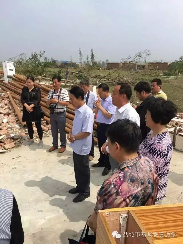2016年6月29日,盐城市基督教真道堂的部分堂委暨办公室人员代表本堂全体信徒赴阜宁县灾区慰问,并带领本堂同工到被龙卷风袭击的重灾区涂桥教会看望。