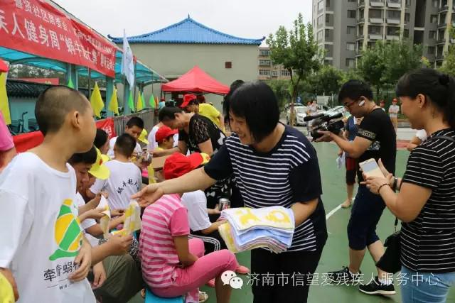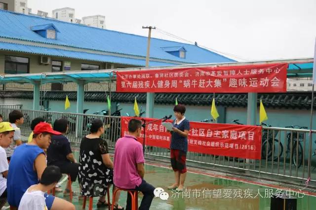 8月8日是第八个全国健身日,恰逢第六届残疾人健身周,山东省济南市信望爱残疾人服务中心(原济南基爱智障人士服务中心)与七贤街道办事处残联、鲁贤社区居委会联合举办“牵着蜗牛去散步”之“蜗牛赶大集”社区公益倡导活动。参与此次活动的爱心志愿者、残障人士及家长、社区居民约有200人。