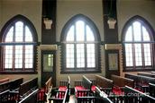 走进教堂,可以发现教堂的内部布局是三层砖木结构,其中第二层殿堂设有尖券穹隆形大祭坛一座,第三层是观礼楼,可同时容纳1200人礼拜。第一层设有副堂、灵修室、会客室、工作室等。