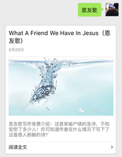 在该微信平台首页下方输入歌曲的名字,比如输入“恩友歌”,会弹出来《恩友歌》的简介和歌曲演唱视频。