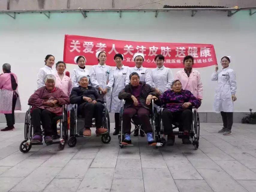 因公寓入住人员瘫痪者居多,服侍人员缺乏,时常有压疮患者。今年3月宜昌市中心人民医院神经科护士长吴胜梅,带领她的团队来公寓义诊,在他们的帮助下,公寓庞婆婆4度压疮现已治愈。
