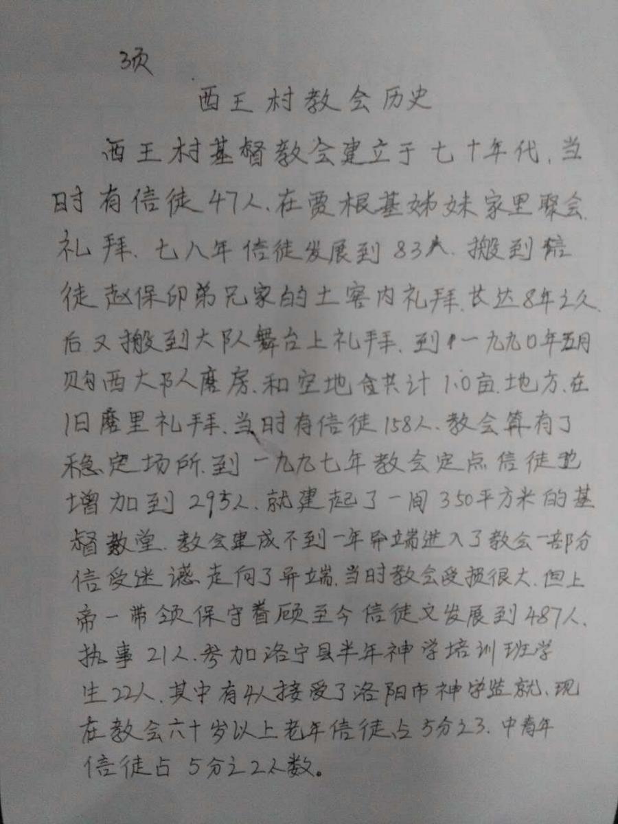 西王村基督教会建堂缘由