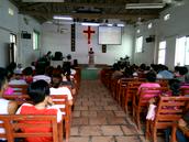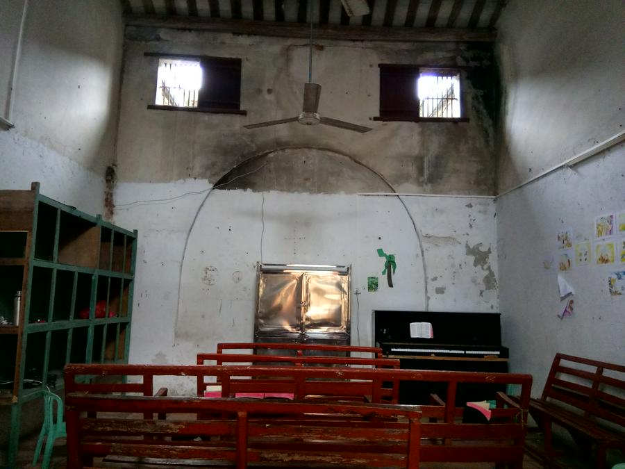 双湖堂给他的第一印象不是很好:土木结构的建筑物因为年久失修,显得破旧不堪;外墙长满青苔,时间久了就变得又黑又丑,内墙也是崎岖不平;更严重的是,礼拜堂前后都有人养猪,进入教堂的范围就可以闻到猪屎味。