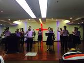 敬拜赞美队成员提前一小时到会场做准备,让每个环节都能流畅地进行。在赞美会开始前,会众互相问候“中秋快乐”和“欢迎回家”。