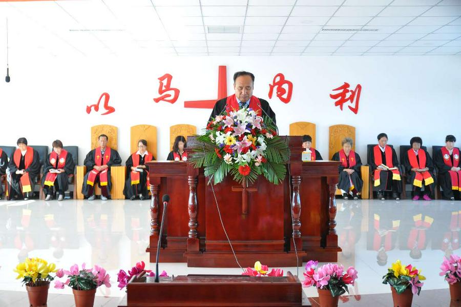 葫芦岛市基督教两会副主席马国富牧师、副会长于加林牧师分别在两处典礼中主持、证道;由市两会秘书长、总干事沈文海牧师、市两会常委左丽华长老启应经文;市两会副总干事高红娟牧师和绥中小庄子教会石素芹长老作了感恩祷告。