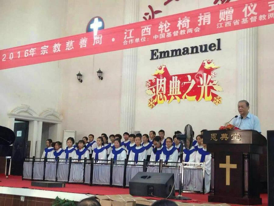 9月25日上午,江西省基督教2016年宗教慈善周·江西轮椅捐赠仪式在南昌市基督教恩典堂举行。今年慈善周,全国基督教两会通过江西省基督教两会向全省10个市捐赠132辆轮椅。捐赠仪式上现场发放20辆。