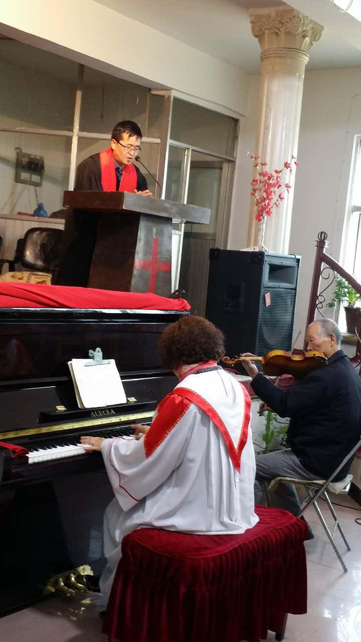 据东川堂贺增海牧师介绍,尹牧师分享的经文是创世记2章15-17节,罗马书12章1-2节,东川堂贺增海牧师主礼,东川堂的民管会主任方志林以小提琴伴奏,300人左右参加聚会。