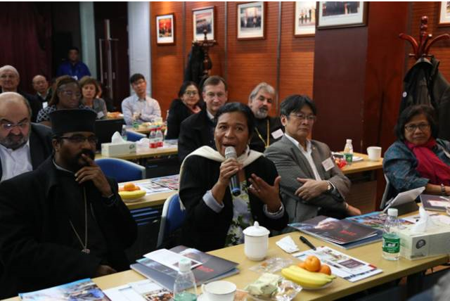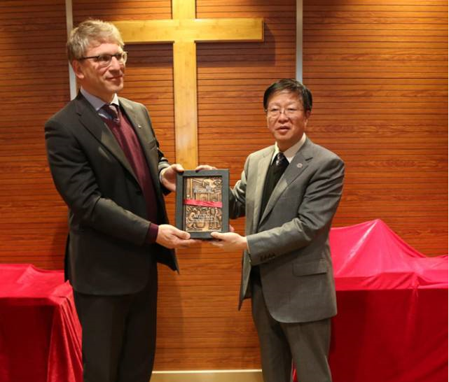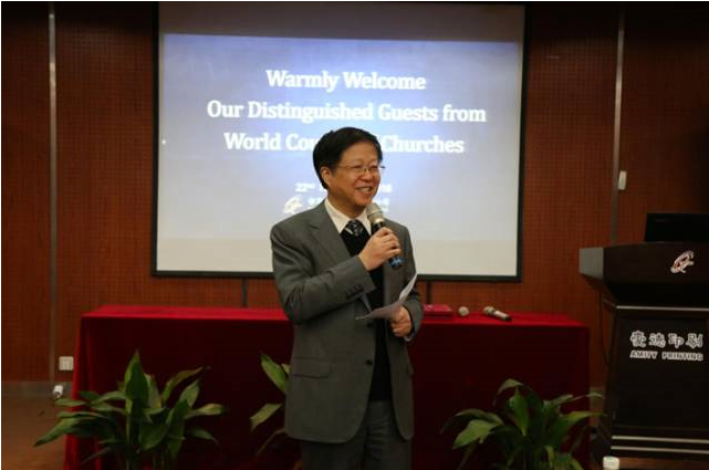 随后,宾主双方举行了座谈。丘仲辉董事长首先热烈欢迎WCC执委会访问团到爱德来参观访问,并希望爱德的热情欢迎能够让客人们忘记室外寒冷的隆冬。他强调,WCC执委会首次在中国南京召开执委会议,并参观爱德具有重要意义,爱德为此深感荣幸。他指出,“访问团一行的到来正值爱德印刷刚刚庆祝建厂30周年和完成印刷1.5亿册圣经之际,三十年前我们难以想象到爱德印刷发展到今天能够成为世界上最大的圣经印刷基地。爱德所取得的这些成就离不开中国政府和中国基督教全国两会的关心和支持,也与WCC及各成员教会对爱德的支持和帮助是分不开的。1985年当爱德基金会成立时,丁光训主教就希望能够基于互相尊重,互相分享,互相信任的原则来践行一种新型的合作伙伴关系模式,爱德的成长和发展正是这种新型关系的生动体现和有力见证。今天,爱德正向着国际化迈进,希望今后能够继续获得WCC的大力支持和帮助。”