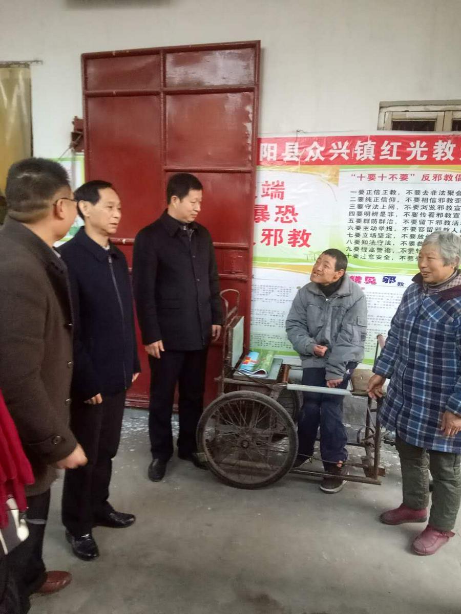 在桃果园,县委统战部副部长,县民宗局庄恒斌局长鼓励受助家庭面对疾病,不要绝望。在众兴镇红光,县民宗局李效春副局长伸出爱心之手,给残疾家庭送去温暖。在众兴镇西康、卢集镇薛嘴等,县基督教三自会主席王昌锦牧师鼓励他们积极面对。在张家圩镇,八集乡等乡镇副主席丁凤之牧师、韩大海长老、秘书长赵建中牧师看望慰问了受助家庭。