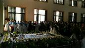 王红牧师做了追思礼祝福祷告后,会众一起共颂主祷文。最后是遗体告别仪式,大家围着龚艳荣教师慢慢地走,看她最后一眼。