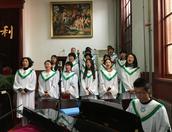 诗班成员来到诗班席位后,站立演唱了《三圣文》歌,随后诗班成员与全体会众站立演唱了《夜尽光天歌》。