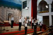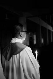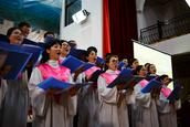 青年诗班进到圣殿台前,手持蜡烛的两位弟兄分别点燃讲台两侧的七灯台,之后是敬拜晚会第一项,由青年圣诗班献唱《诸天述说神的荣耀》、《因祂活着》。是的,上帝差遣祂的儿子耶稣基督降世为人,赐下仁爱和宽恕并拯救罪人,罪人却不认识主耶稣反而将祂钉于十字架。耶稣在十字架上受死、埋葬、第三天从死里复活。他在十架上舍命救赎的大爱、他那超越生死的权柄、以及出死入生的能力让我们全然相信,面对未来的一切艰难和坎坷,必有主带给我们丰丰富富够用的安慰,“因他活着”就有“活泼的盼望”且活出更新的生命。