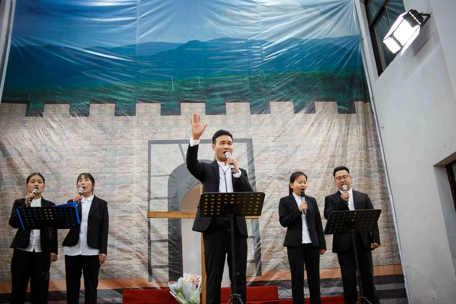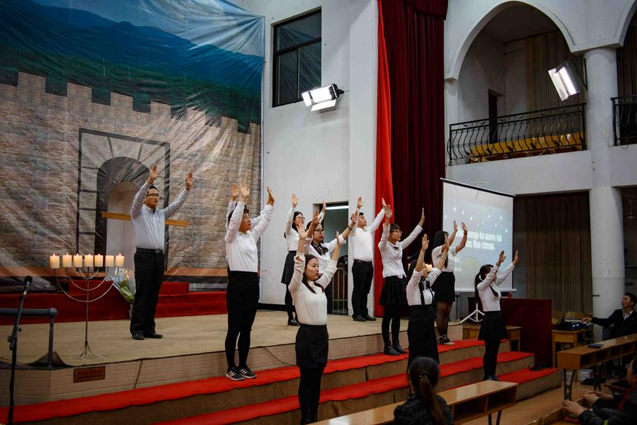 晚上7点,众弟兄姊妹及慕道友一起进入位于西安高新六路的景新礼拜堂。7点半正式进入敬拜晚会,台上主持人颂读宣召经文(腓立比书2章6到11节),紧接着青年诗班分列两排,分别由手持点燃蜡烛的两位弟兄引领,庄严地进入圣殿。