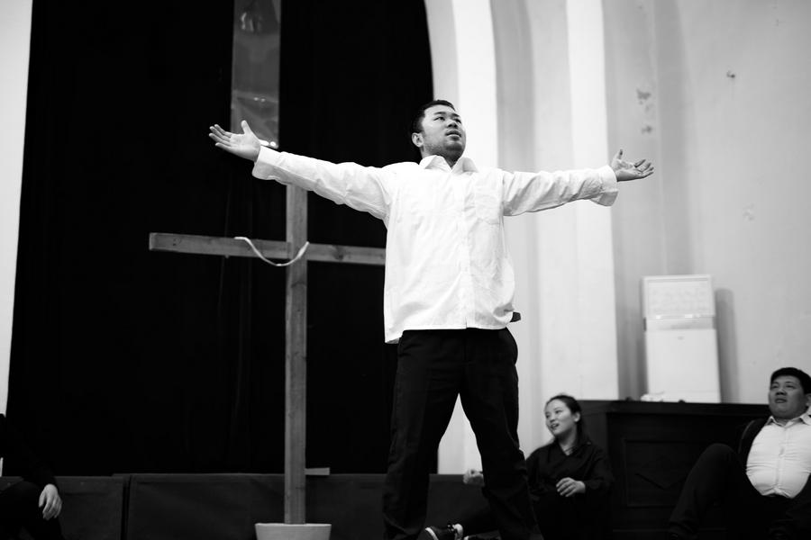 台上同工带领《拥戴歌》后由弟兄姊妹演绎音乐剧《救赎》讲述耶稣祂诚然担当我们的忧患,背负我们的痛苦;耶稣安慰心灵创伤的人,医治瘸腿的,拯救被捆绑不得自由的人,使瞎眼的重见光明。众人却如羊走迷,各人偏行己路。将他钉死在十字架上。他死里复活,带领信从他的人走光明的道路。演毕台下报以了长久不息的掌声,这真是一场感人的圣剧:耶稣为我钉死在十架上,耶稣今日的复活为我而生。