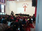 随后,流芳福音堂刘金彩教师介绍了该堂的历史和建堂经过:流芳福音堂坐落在武汉光谷腹地、交通便利。流芳福音堂是在1988年宗教改革后,从政府手中收回一个仅有40㎡破旧不堪的教堂,之后开始传扬主的福音,迄今已经快30年,期间历经两代教会牧者的奔波筹建,先后三次易址新建,每次都得到了政府部门的关怀和支持。