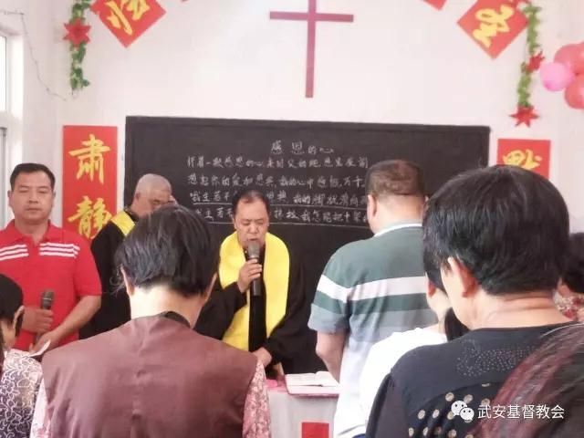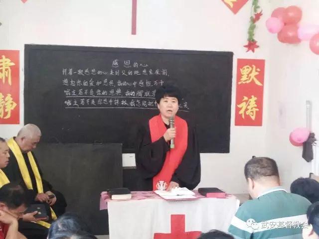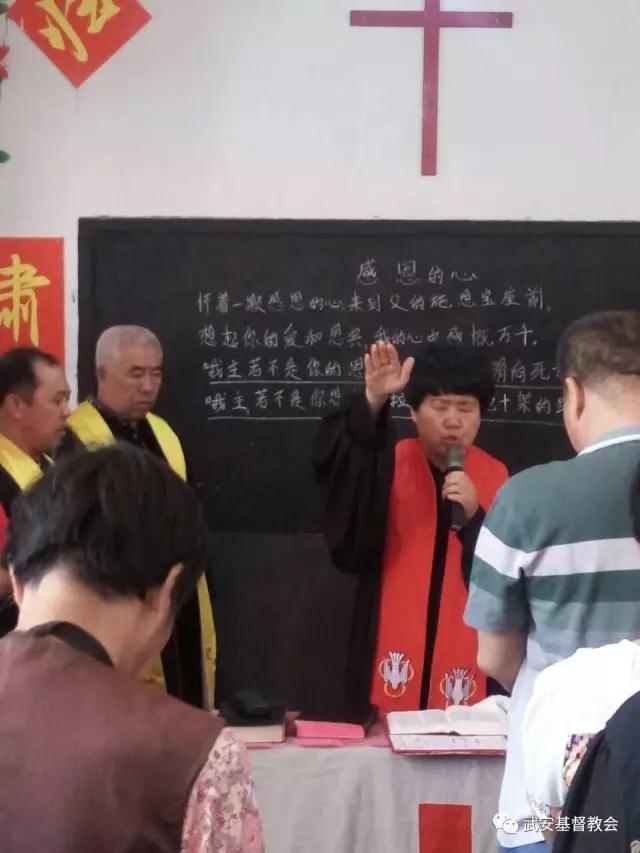 武安市基督教两会李秀丽牧师带领两位长老主持了仪式。并为新圣堂落成作祝圣祷告,在圣乐队军鼓伴奏中,李秀丽牧师带队进入新圣堂,由赵栓太长老证道,证道结束后,由李秀丽牧师作了讲话,随后由靳虎明长老作感恩祷告,李秀丽牧师作祝福祷告。