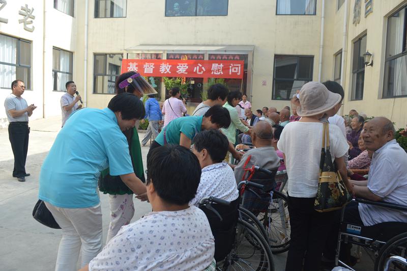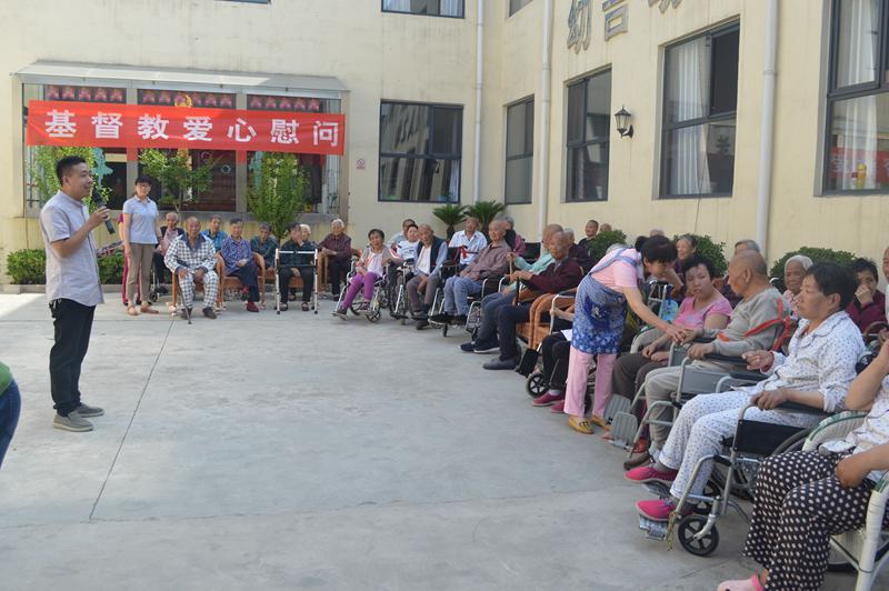 上午9:30分在养老院宽敞的大院里,由弟兄姊妹为老人献上了《这一生最美的祝福》,拉开了慰问演出的序幕,文英姊妹一曲《一件礼物》满含深情与老人一一握手,有小品《问路打岔》、有孩子们天真无邪的表演,用他们稚嫩的小手把教会爱心奉献的香蕉、软面包送到他们手里, 使耄耋之年老人心灵深处得着丝丝慰藉,脸上露出笑容.....美好的时候总是短暂,上午11点结束了慰问,离别时弟兄姊妹把老人送回他们的住所。