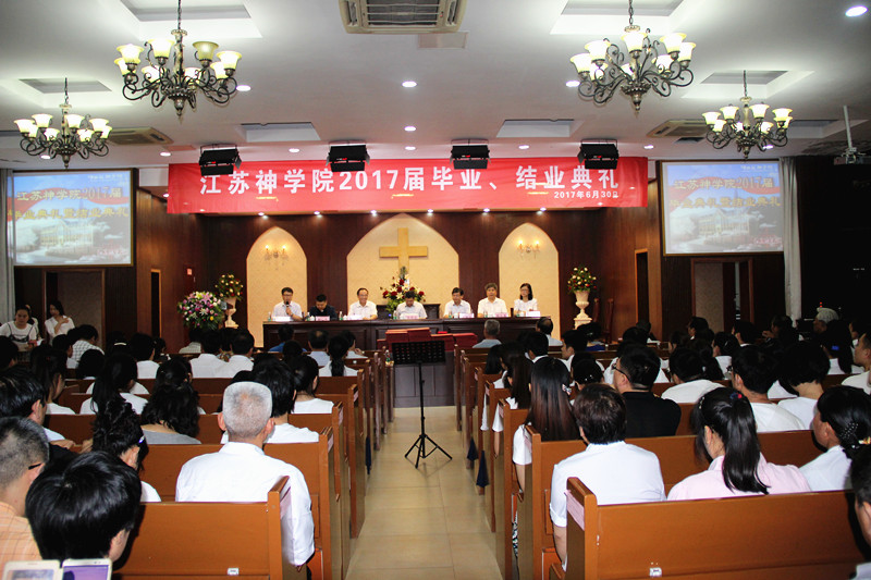 2017年6月30日上午,江苏神学院在礼堂里举行2017届毕业、结业典礼。今年本院共有189人获准毕业。其中本科毕业生70人(含苏州校区8人),在职大专班119人。另有教职人员进修班40人结业。