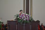 辽宁省基督教协会会长张月竹牧师以《学做好牧人》为题证道,在证道的开始,她强调了牧者的重要性:“牧人对教会太重要了!有什么样的牧人,就有什么样的教会。牧者混乱,教会也混乱;牧者世俗化,教会也世俗化;成为好牧人,教会因你得福。”