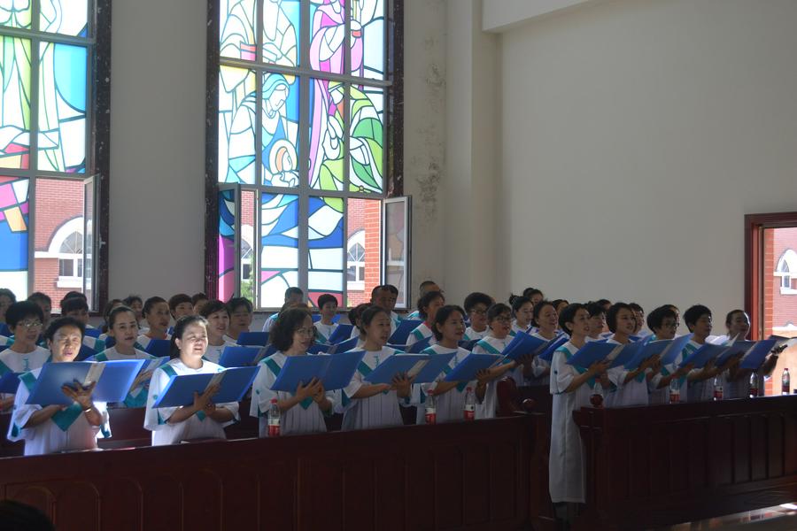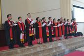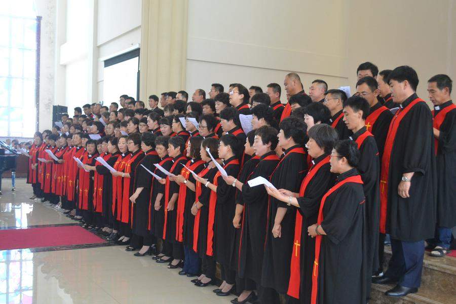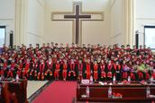 按立结束后,新按立的102位牧者一起献唱了由侯玉洁牧师作词作曲的诗歌《接受神圣职分》,按立团的13位牧者献唱了《一切献上歌》。