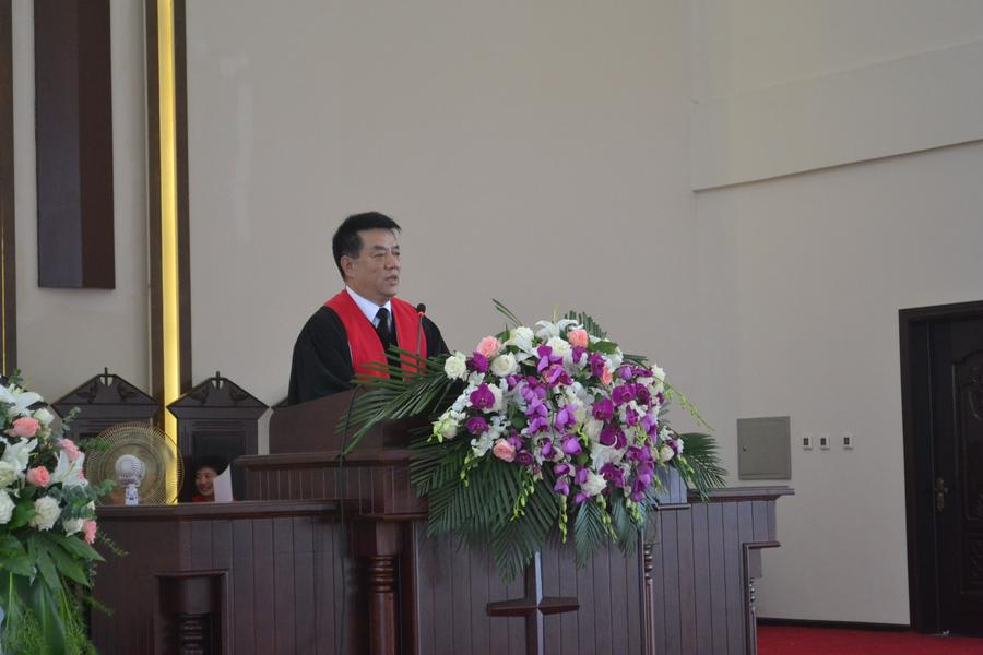 辽宁省民族宗教事务委员会二处处长何耘来希望新按立的牧者们品德能服众,他分享了4点:传道和育人相统一,牧者要把自己塑造成弟兄姐妹的镜子;言传和身教相统一,身正为范,身教更加重要;潜心传教与关注社会相统一,牧者不能闭门传教,不知道外面世界发生了什么;自由与规范相统一,教会要在宗教自由的法律下规范的发展,当教规严于国法时,牧者才能出类拔萃。