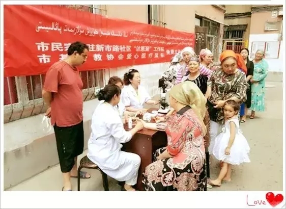 2017年8月5日,新疆乌鲁木齐基督教协会爱心医疗团队在新市路社区开展义诊事工,为76名居民进行了义诊。