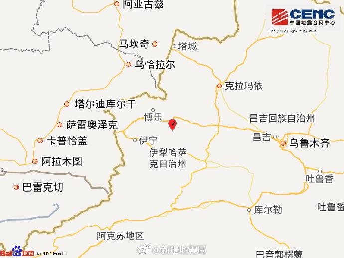 目前,新疆地震局已经启动Ⅱ级应急相应。目前,暂无房屋破坏和人员伤亡报告,自治区地震局正在调遣人员赶赴震区。现场工作人员表示,在精河县大河沿子镇拜尔盖斯村,老旧房屋有垮塌、裂缝现象。