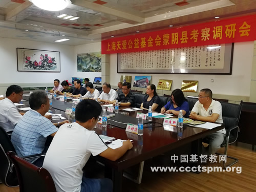 据中国基督教两会网站消息,当天上海天爱公益基金会实地走访了当地的蒙阴一中和蒙阴实验学校,并与蒙阴县教育体育局干部、蒙阴一中和蒙阴实验学校的校长老师们召开了专门的考察调研会。