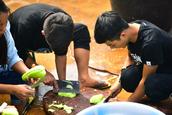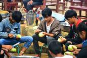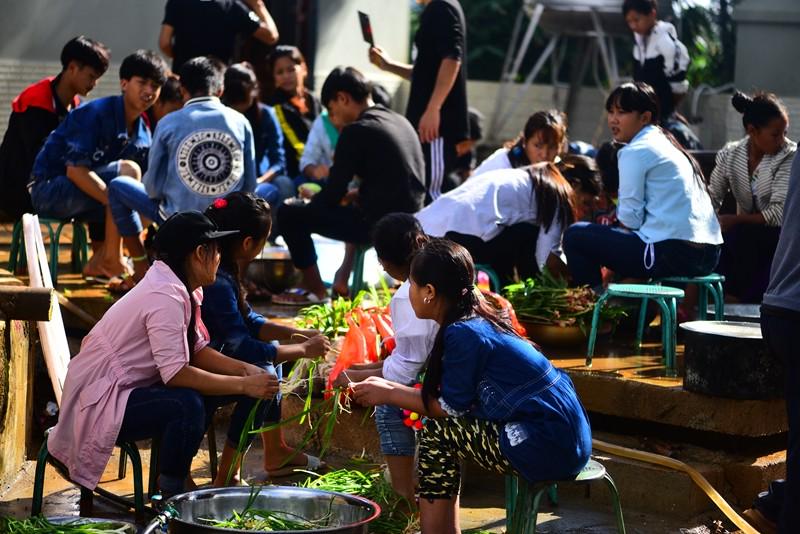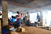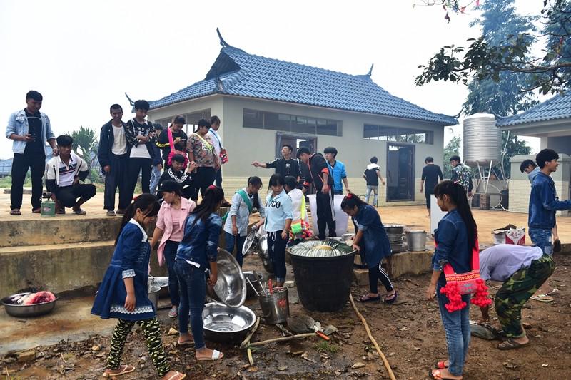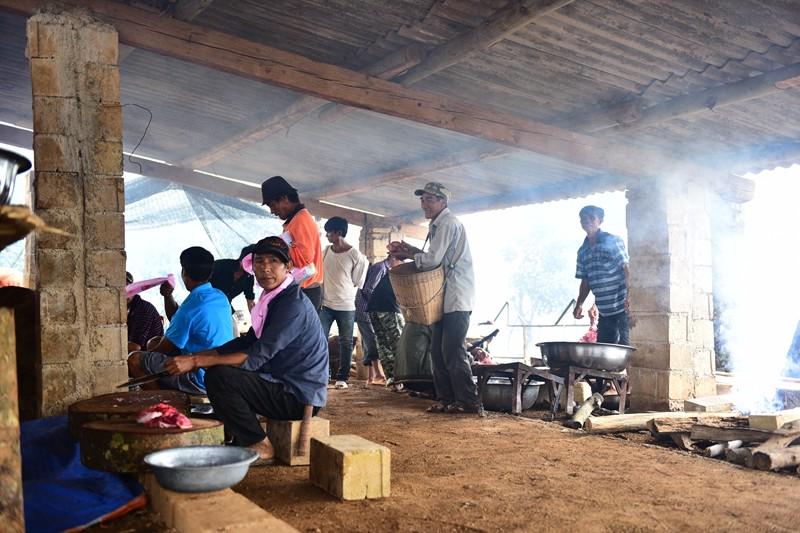 奉献过后,信徒们会将猪鸡宰杀、将蔬菜择好、洗干净,然后准备饭食。之后,传道人会带领信徒们一起祷告,感谢神过去一年的保守,也祈求神在新的一年里保守弟兄姐妹们拥有基督里的平安。完了一起享用感恩节“爱宴”,有香喷喷的米饭、南瓜排骨汤、炒肉、凉菜等,任何一个到场的弟兄姐妹都可以自由地享用桌上的美食。