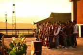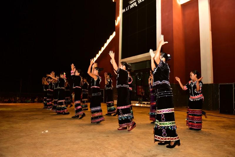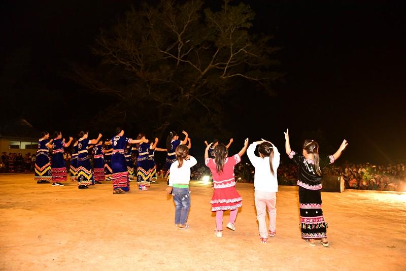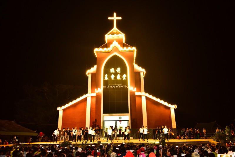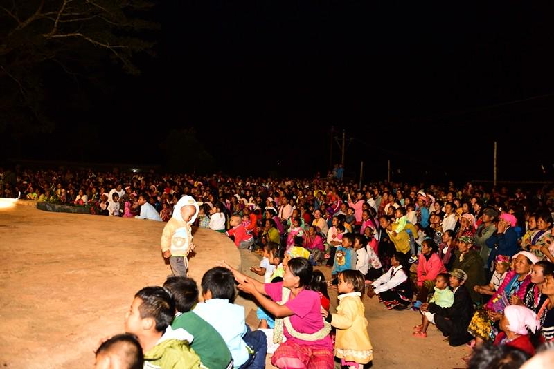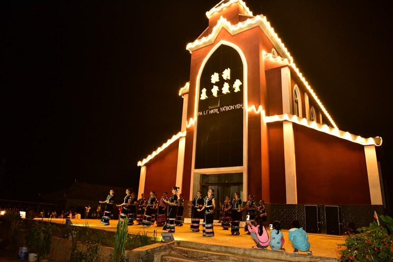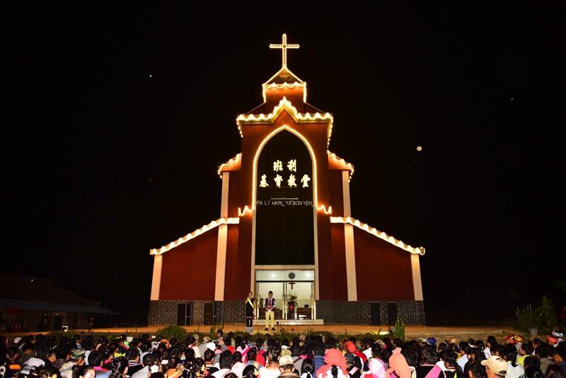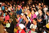 傍晚时分,天边的夕阳晕染了整个会场,一层层金黄洒在大家的脸上,不一会儿赞美会就开始了,不同教会的节目轮番上演,多数为姐妹们献上舞蹈。除了拉祜族,还有非信主的当地傣族人也受邀参加,她们同样献上了优美的舞蹈,舞姿婀娜。