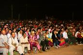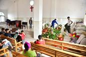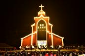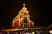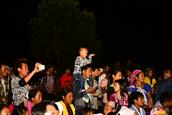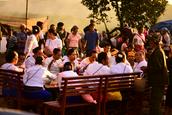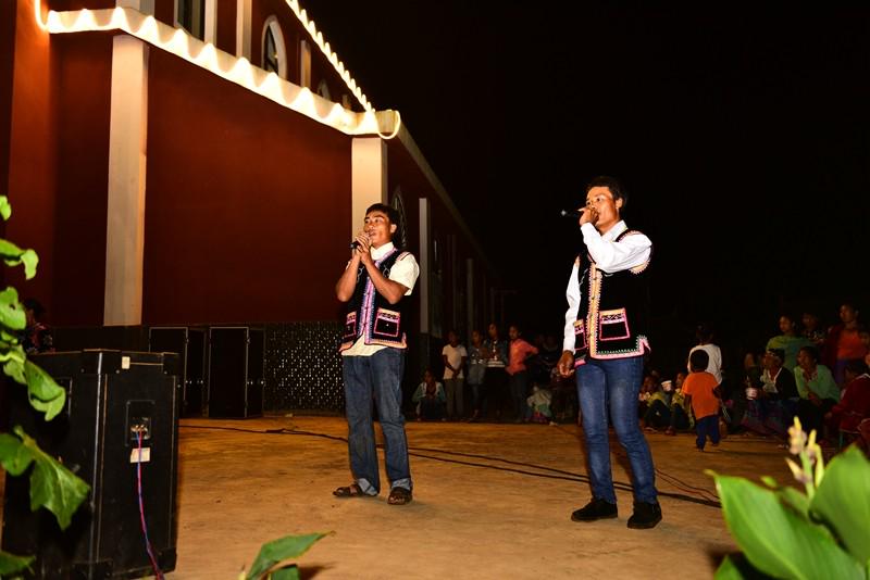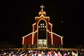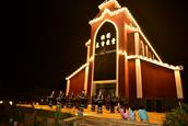 在享用过美食之后,他们就开始准备赞美晚会,傍晚时分开始歌唱跳舞赞美,不同教会的弟兄姐妹满有喜乐地在教堂外的广场上敬拜,台上的大人和小孩都满脸笑容,赞美一般会到第二天凌晨一点左右。