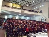 在荣休感恩聚会中,牧长同工先在堂前合影留念,然后到二楼举行感恩崇拜。由区基督教两会副主任副会长左舒慧传道读经证道,已荣休的陈俊莲老牧师祷告,副主任副会长王兆华牧师主持,主任会长张建顺牧师作感恩发言,张牧师向老人们汇报了区基督教两会近期开展的一些事工,取得的一些成就。中午,大家一起在餐厅就餐,彼此交通,其乐融融。
