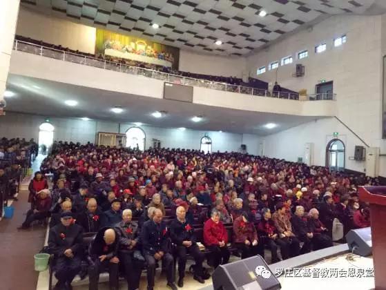 在29日的敬老感恩崇拜中,罗庄区基督教两会在恩泉堂、蒙恩堂,分别针对老年信徒表达敬意,在崇拜开始前,为老人们戴花,并请老人们到前排就坐。无论是教会的牧者还是广大信徒,都满了对上帝的感恩以及对老人们的敬爱。