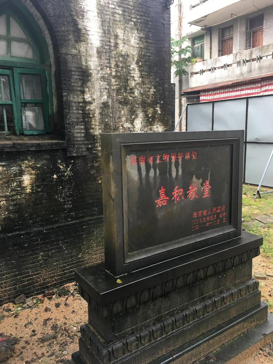 这是一座历史与文化背景有近百年的教堂,建筑风格别具特色。这座教堂是1920年,由美国人建造的,福音传到琼海嘉积地区则是在1883年,在嘉积地区共有三个教堂,其中最小的甚至被称为街头会堂,距离这座教堂较近的一座小一些的教堂已经拆了。现在这座教堂因为屋顶破损被定为C级危房正在修缮中。