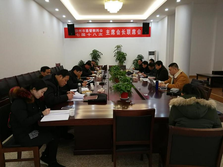 徐州市基督教两会七届十八次主席会长联席(扩大)会议于2018年元月3日下午在市基督教两会驻地崇真堂召开,市基督教两会副总干事以上成员及各县(市)区三自主席参加了会议。会议由市基督教协会会长乔建设长老主持。