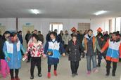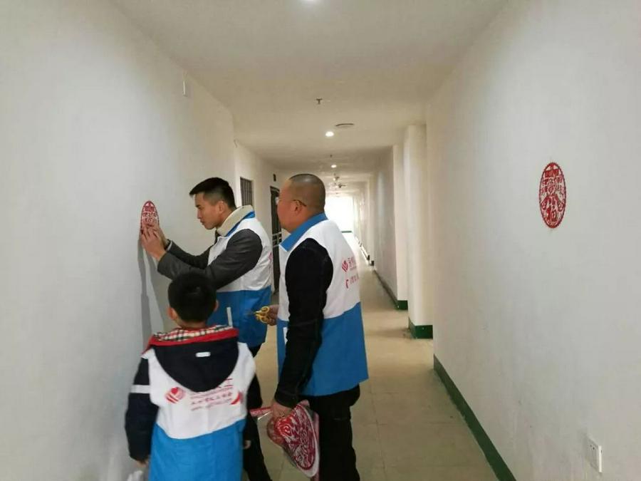义工队员给墙壁上与窗户上粘上的红色窗花给朴素的病房带来喜庆的氛围。