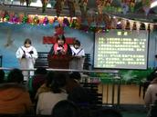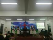 当日晚6点30分在巴城教会举行公祷日聚会,主礼人丁彩萍牧师携辅礼人李杭芝、李倩、王会成、周学凤向会众问安,辅礼人分别以苏里南原著居民后裔、非洲奴隶后裔、中国移民后裔、合约劳工后裔的身份阐述苏里南地区的出产和景观,向大家展示一副生机勃勃的苏里南。随着剧情的变换,今日的世界,许多地方严重污染以及破败的景象展现在大家的面前,大家静默反思,所有今天的一切究竟是怎么造成的?主礼人和大家分享经文并呼召会众进行认罪祷告,今日的自然破坏与我们每个人都有关系,呼求神帮助我们,改变我们,让我们每个人都能成为上帝忠心良善的好管家,有力量来修复上帝起初所造宇宙万物的荣美。