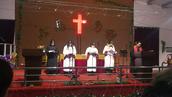 诗班献唱《快乐崇拜歌》和《主是我的诗歌》,就像诗歌中说的:主是不断赞美中心,主所造物都欢欣,群星天使团聚讴歌,天地反映主光明,诗歌唱出了我们共同的心愿,在我们共同的努力下,相信世界将越来越美好。最后在主持人的带领下一同为软弱的、困苦的、疾病的、忧伤的、沮丧的以及为整个大自然祷告,最后俞牧师奉主的名举行差遣礼和祝福。
