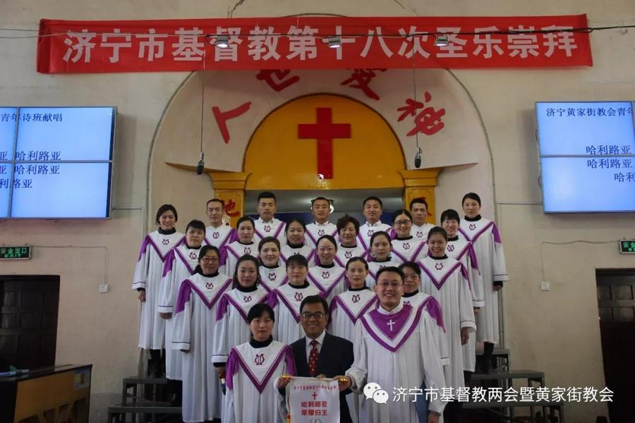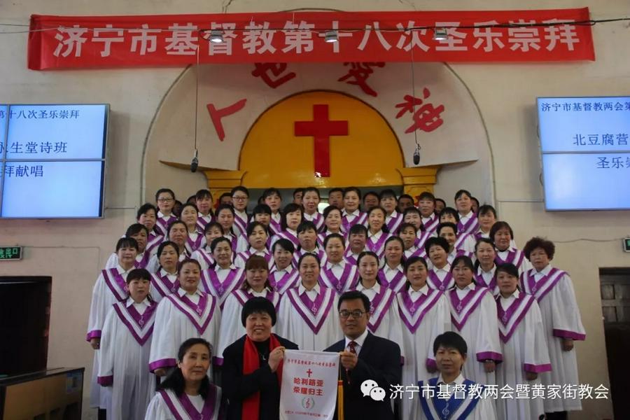 2018年4月6—7日,济宁市基督教两会驻地黄家街基督教会迎来了全市第十八次圣乐崇拜的举行。来自济宁14个县市区的36个诗班以及黄家街教会的信徒约两千人参加了圣乐崇拜。诗班队伍里有青年诗班、中年诗班、乐龄诗班、工商诗班,还有联合诗班和乐队。