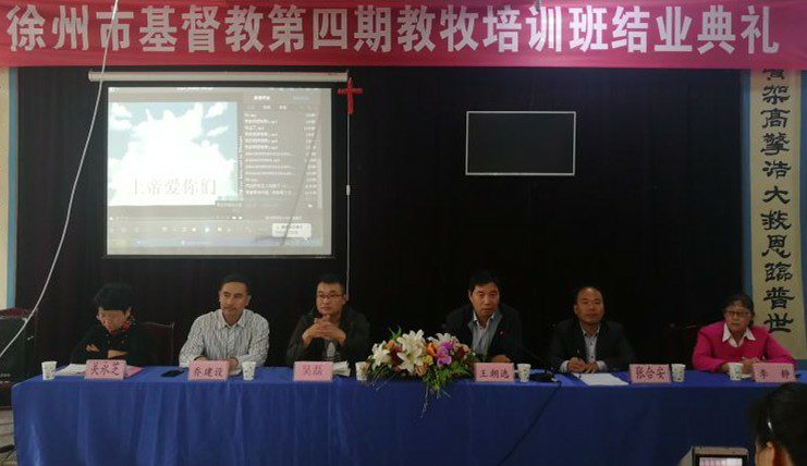 徐州市基督教第四期教牧培训班在天父上帝恩手的带领下,在市民族宗教事务局领导的大力支持下,在市基督教两会的亲切关怀下,经过全体老师和学员的共同努力,历时两个学期共五个多月时间,已顺利完成了预定的各门课程,于5月25日下午举行了结业典礼。