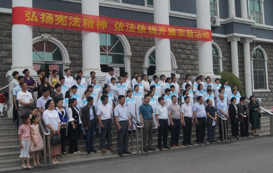 贾汪区基督教三自爱国运动委员会主席付昌全牧师为会议代祷,之后全体同唱赞美诗127首,表达对教会和国家的热爱之情。
