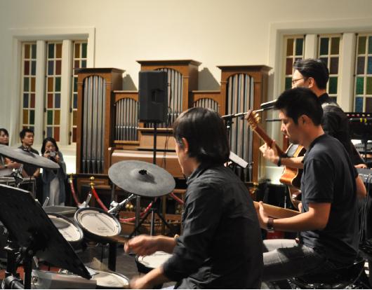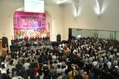 整个尚友堂座无虚席,气氛热烈,会众台上台下高举双手,向主献上赞美敬拜,用音乐感谢天父无比的爱,一起口唱心合,与主重温美好时光!