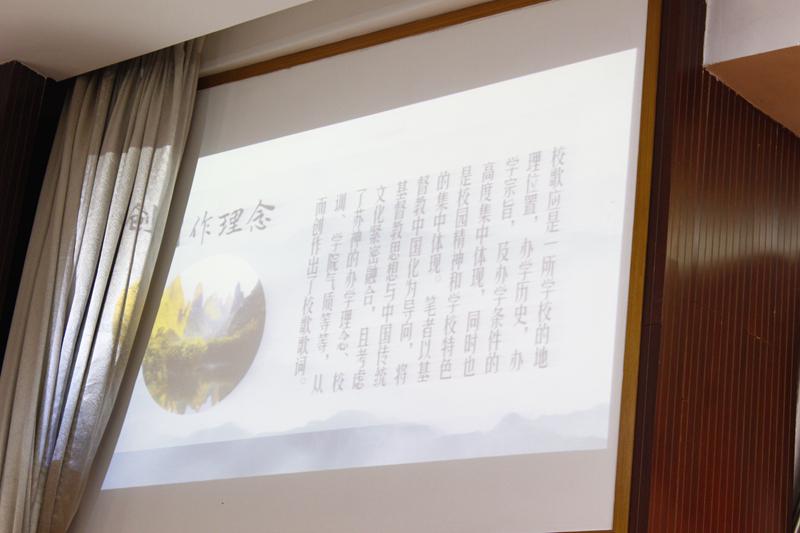 感恩圣餐崇拜后是院徽院歌发布会和十字架展览馆揭牌仪式。张克运牧师首先介绍了江苏神学院院训“远象、责任和服侍”的涵义,随后由苏喜乐牧师介绍院徽的设计、万银雪同工和吴安娜老师介绍院歌《光耀苏神》的创作,院徽和院歌结合了基督教与江苏地域文化的特色。