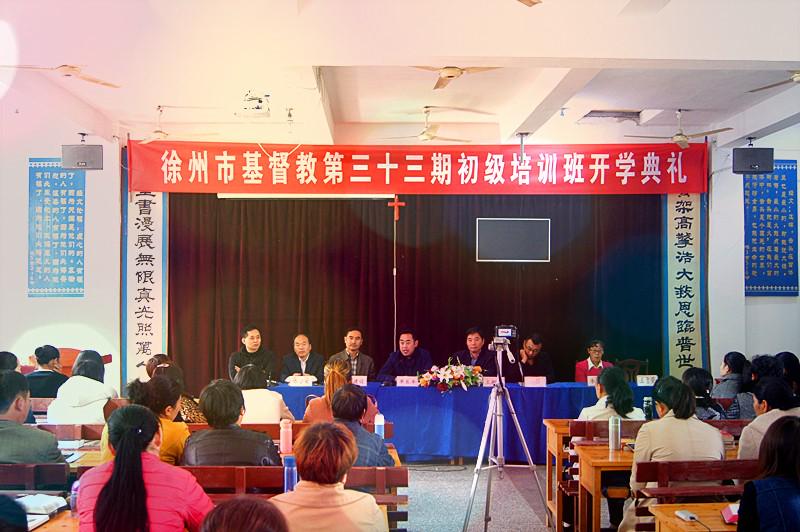 徐州市民族宗教事务局单长丰副局长、宗教处吴磊主任、徐州市基督教三自爱国运动委员会主席王朝选牧师、徐州市基督教协会会长乔建设长老应邀参加了典礼。开学典礼由徐州市基督教三自爱国运动委员会驻会副主席张合安牧师主持。