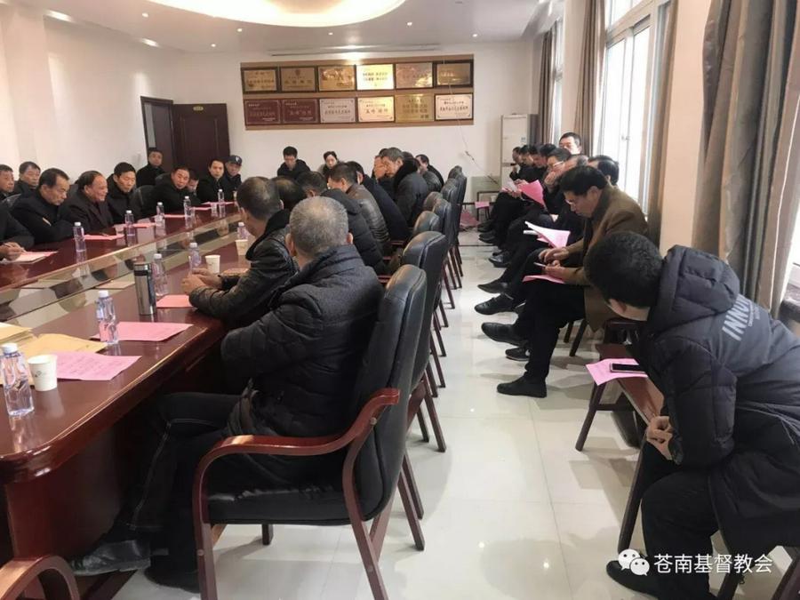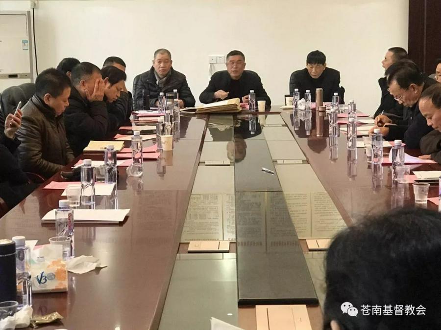 2019年1月14日下午,温州苍南县基督教七届第十七次常委扩大会议在灵溪永生堂六楼会议室召开,县基督教两会主席杨介化长老主持全会,会议在诗歌、祷告中开始。