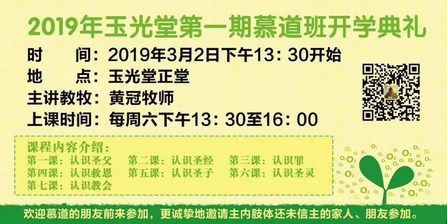 3月2日,大连玉光街教会2019年度首期慕道班和成长班分别举行了开学典礼,此后每周六下午13:30-16:00上课。
