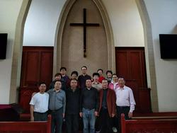 王牧师简要的介绍了济南这座城的历史与现状及后宰门礼拜堂的沿革变迁和2017年大修工程的情况,并请南平教会牧长同工多为本堂的圣工付上祷告的代价。