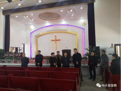 3月19日下午,江苏省盐城市滨海县基督教三自爱国会主席王林专牧师、蒯茂清牧师、李龙之牧师一行9人,到响水县基督教会参观交流,在响水县基督教会徐飞牧师、韩荣荣同工的陪同下,分别参观了小圩教会、黄圩教会、杨回教会、张湾教会、小尖教会、基督之家。